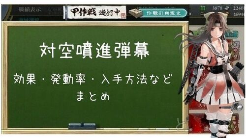 対空噴進弾幕についてまとめました。 噴進弾幕の効果・発動条件と発動率・噴進砲改二の入手方法をご紹介します。